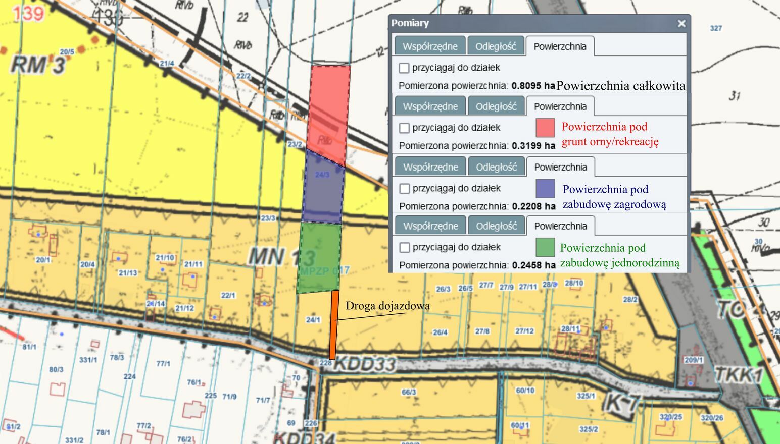Powierzchnia działki obejmuje trzy sposoby użytkowania gruntu:
